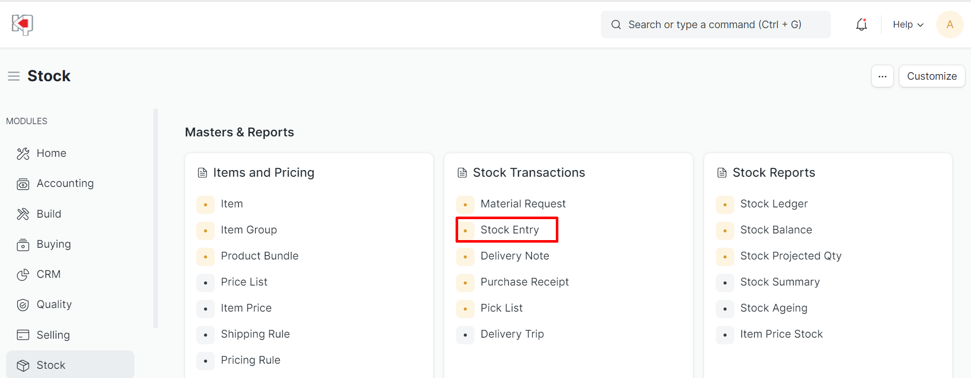 Create new Stock Entry and Select Stock Entry type as "Material Transfer"