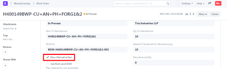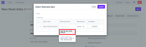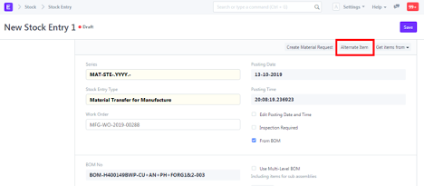 While sending material against work order in Stock Entry, click on “Alternate Item”